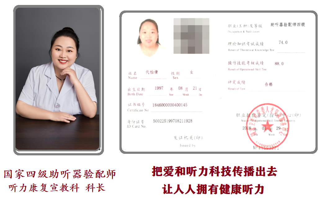 2018年通过国家卫健委人才交流中心考核认证获国家四级助听器验配师资格