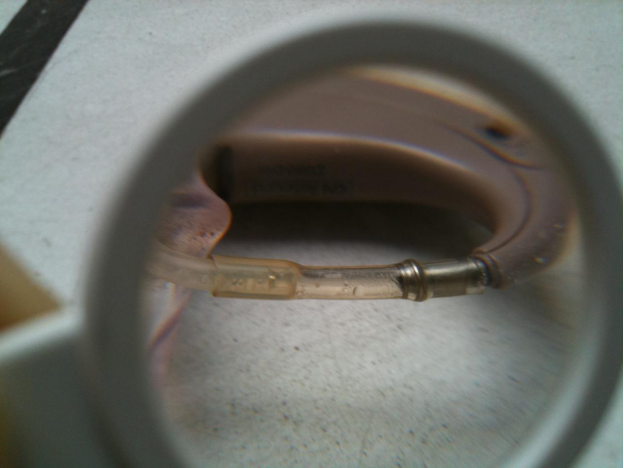 2、当耳道内外温度和湿度差异较大时,容易导致热气借耳模孔进入到受话器内并冷凝在内部,从而堵塞出声孔并腐蚀受话器,甚至会进入到助听器内部导致助听器芯片受潮,影响到助听器的使用效果。在冬季时传声管内也容易凝结小水珠,当传声管中有水珠时应用纸巾吸干水珠,需要时更换连接管;