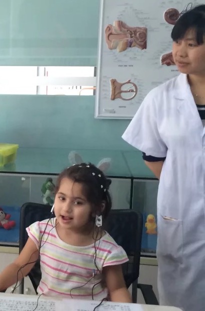 为了迎接这位小来宾,我们为她预约了亿尔聪听力专家钟予教授(英文名Helen)。根据检查结果和家人的诉求,专家推荐选择儿童助听器Safari(小老虎)300 SP。经过Helen教授的调试,在她戴上助听器听到声音那一刻,喜笑颜开,看得出来她很高兴,随后就跟她爸爸愉快地聊起天来。