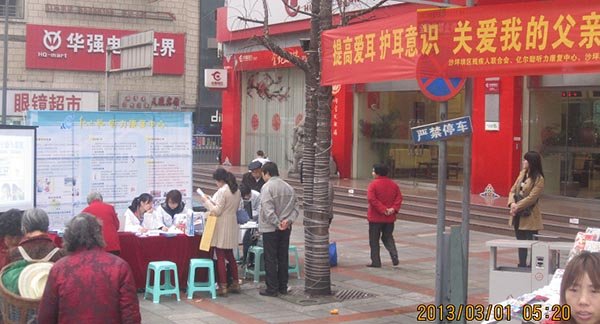 重庆市沙坪坝区残疾人联合会、重庆亿尔聪听力康复中心以及重庆市渝培路街道共同开展了爱耳护耳的宣传活动。今年宣传主题是:“健康听力,幸福人生。”“提高爱耳护耳意识,关爱我的父亲母亲。”