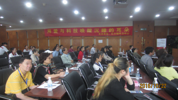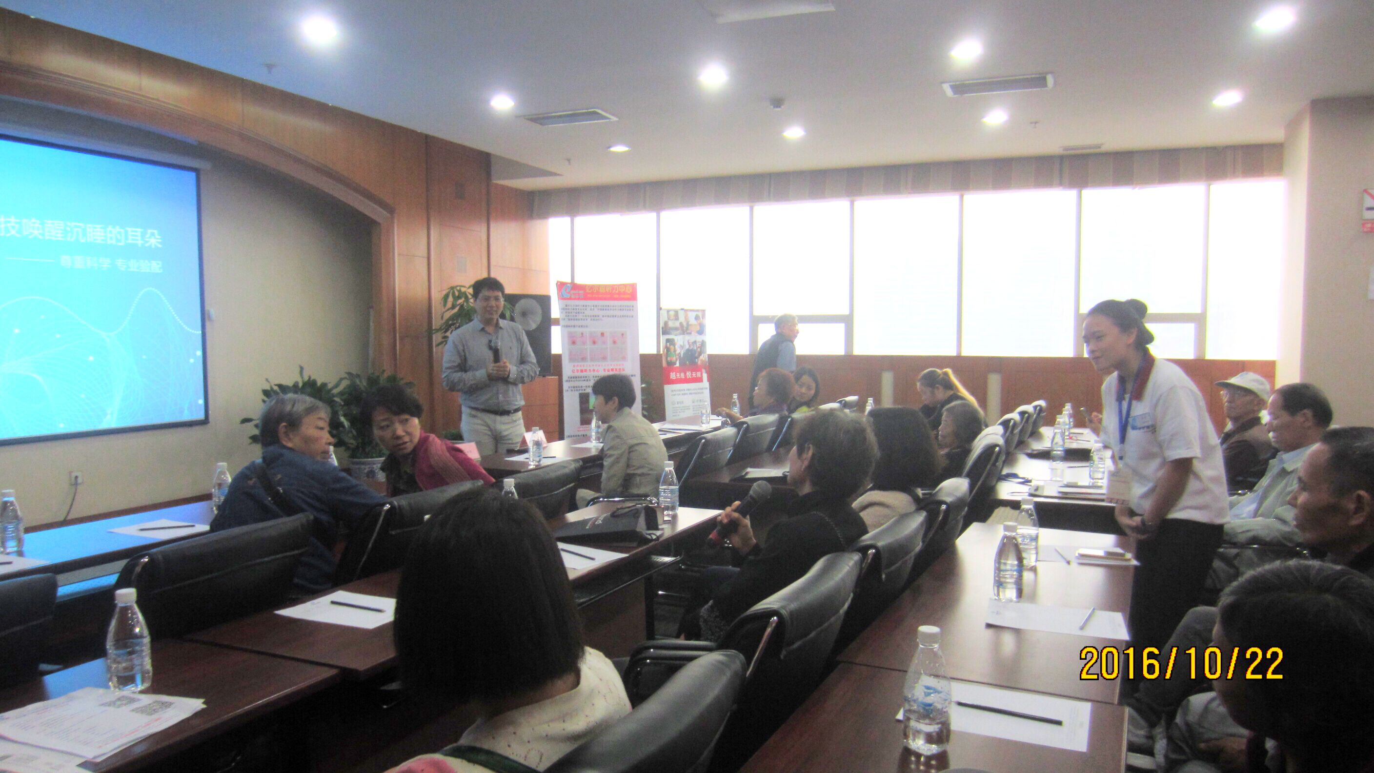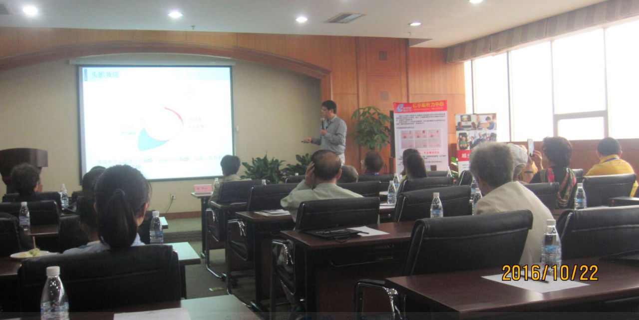 2016年10月22日上午9点半,亿尔聪主办的一场关于听力康复的科普讲座开始了。在现场讲座中,钟教授和曹老师先后为听众朋友们普及了现代助听器的优势和助听器验配的正确方式、双耳验配的好处以及如何正确使用助听器。