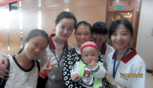 活动现场与经耳聋基因严格检查后出生的听力健康的“明星”小宝宝合影