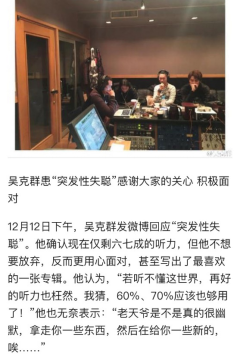 2016年,吴克群承认左耳患有突发性耳聋的传闻,疑似压力过大导致,又没有及时就医,已放过治疗期,很难恢复。
