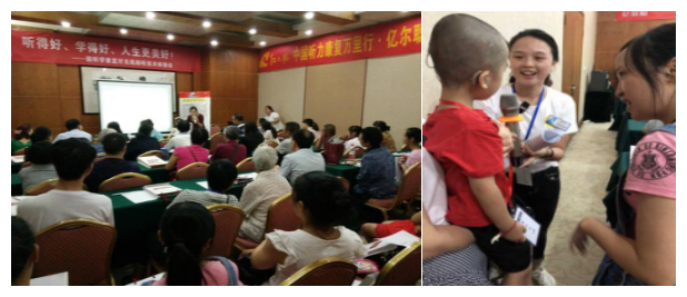 这次活动也有部分成年和老年听障朋友,到会场的年长有82岁的老人,也有才3岁的孩子,有德高望重的教授、耳鼻喉医务工作者,也有在广州务工请假千里迢迢赶来参会的劳动者。让我们感动的是讲座大家都全神贯注、聚精会神……看到大家对听力康复的渴望,我们更加感到肩上的责任重大。