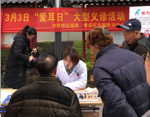阳春三月,春暖花开,是万物复苏、生机盎然的季节,2019年3月3日恰好又是我国第20个世界“爱耳日”,活动主题:“关爱听力健康,落实救助制度”。亿尔聪响应号召,每年爱耳日都深入街道、社区、养老院,为居民进行听力普查,提供听力保健、听力康复知识及助听器选配等咨询。自3月1日至3月8日,一周来亿尔聪已与沙区残联、龙湖椿山万树养老、陈家桥医院、建设医院等,联合开展了普及听力常识、听力检查、助听器试听等活动,受到一致好评!