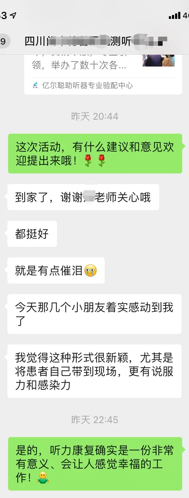 一位医务人员看到台上小朋友们的表演,她说:“两个勇敢的小朋友在台上与演讲嘉宾交流,其中九九小朋友因耽误了康复的时期,9岁才戴上助听器,现在还发音不清楚,还不能完整地表达一句话,我好难过。看到小洋洋,因为3岁前就及时佩戴了助听器,现在他发音标准,还会表演魔术,我好感动……”