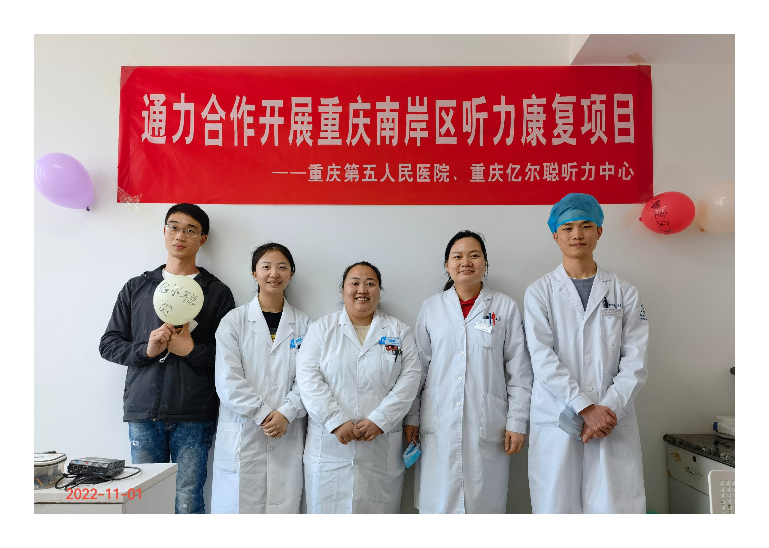 重庆市第五人民医院始建于1896年,是一所拥有百余年悠久历史的老院。2018年8月13日重庆市第五人民医院挂牌为中国科学院大学直属附属医院,该院致力于打造“技术精湛、服务温馨、特色突出的三级甲等综合医院”。耳鼻喉科学术带头人蒋主任积极进取,勇于开拓新技术和新业务。经过严格的审查评估,亿尔聪听力中心顺利通过了助听器项目的各项招标以及完成了各类筹备工作。于2022年底,重庆市第五人民医院耳鼻喉科与重庆亿尔聪听力中心正式开展合作助听器验配工作。
