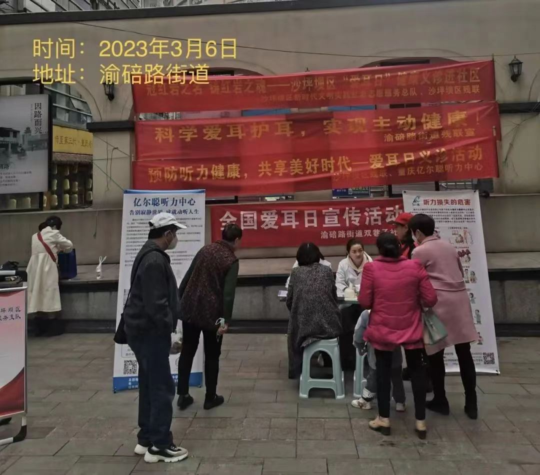 今年爱耳日强调“主动健康”,亿尔聪希望通过爱耳日活动,让更多的人开始重视、保护或康复听力。虽然告别三月,但亿尔聪听力中心还持续在沙坪坝社区街道、养老院进行听力科普宣传活动,我们也欣喜的看见越来越多的单位和个人开始重视听力,关注听力康复。我们欢迎大家积极参与,一起携手实现主动健康!