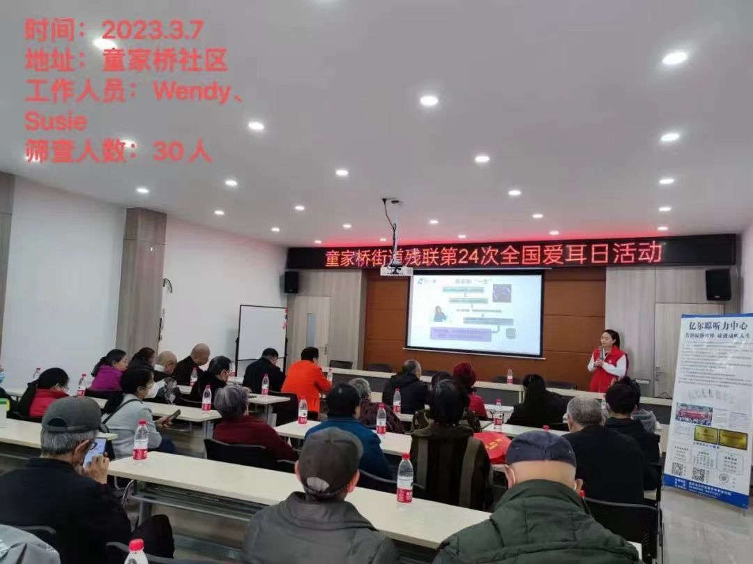 每年的三月是亿尔聪听力中心最忙碌的时刻。今年,在沙坪坝区残联的领导下,亿尔聪开展了24场听力筛查及听力科普宣讲活动,创历年最高记录。参加咨询和筛查的人数总计达622人,其中电耳镜检查82人,纯音筛查216人。据筛查统计,其中听力正常40人,轻度67人,中度41人,中重度31人,重度18人,极重度15人,无法配合4人。