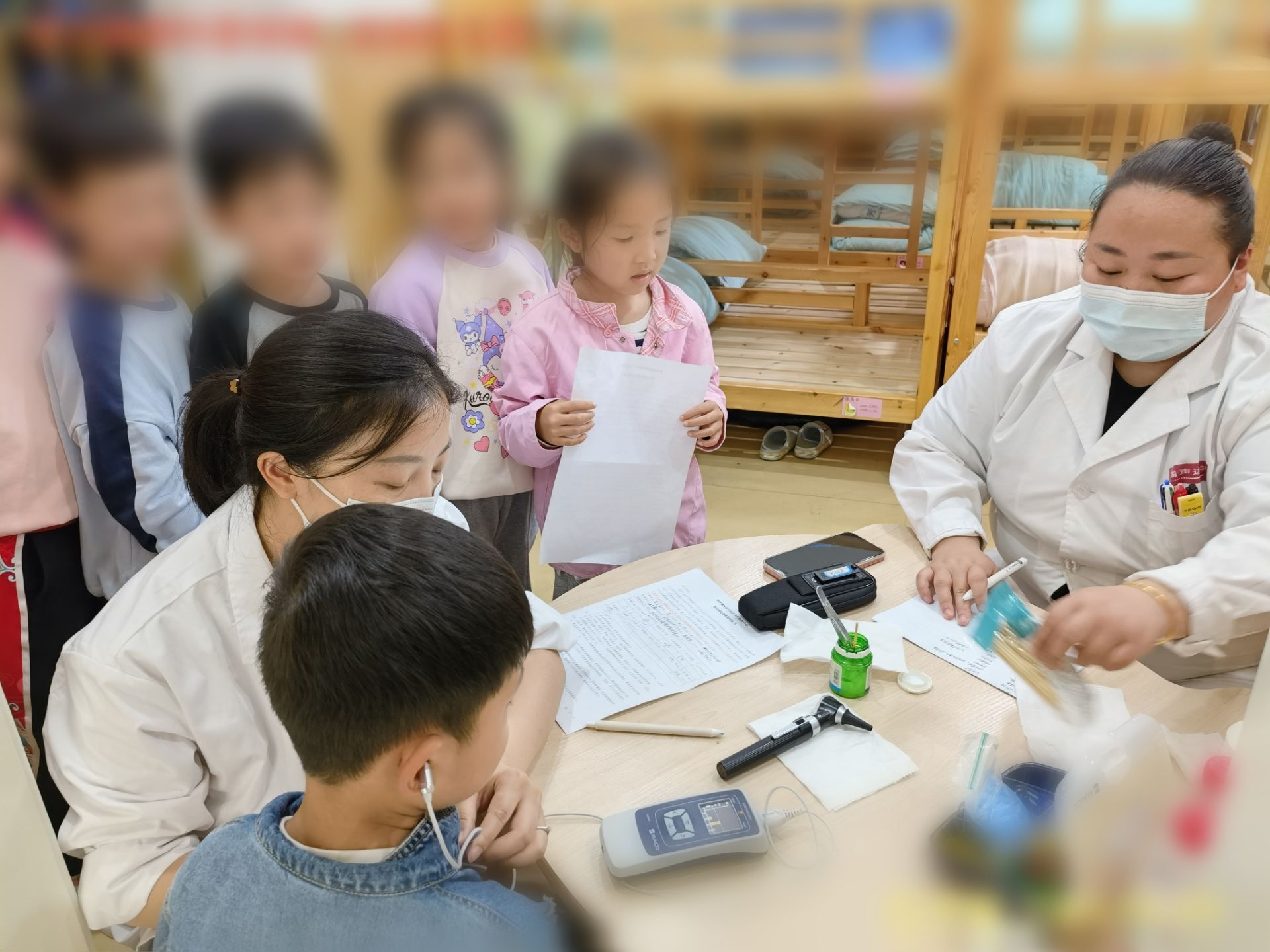 亿尔聪听力筛查活动中,幼儿园的领导和老师们组织孩子们井然有序,小朋友们对听力筛查都很好奇和配合。